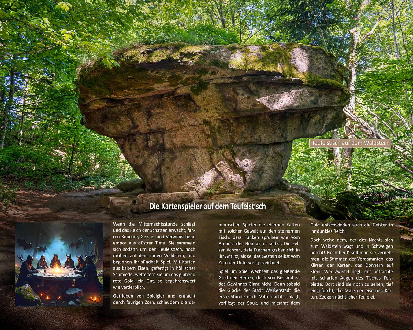 Das Fichtelgebirge und der Steinwald mit ihren Wäldern, stillen Seen und beeindruckenden Felsen schaffen eine geheimnisvolle Landschaft mit einer besonderen Atmosphäre. Diese einzigartige Natur war schon immer eine Quelle der Inspiration für zahlreiche Sagen und Geschichten, von denen Sie einige hier finden.